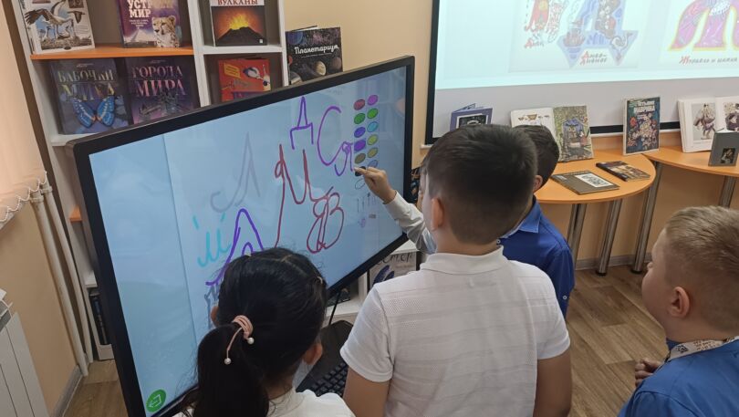 В завершение встречи библиотекарь познакомила юных читателей с книгой «Сказочная азбука», которую придумала сама автор. И предложила ребятам нарисовать свою сказочную букву на интерактивной панели.
