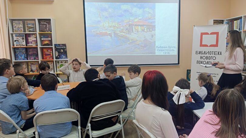 В центре литературы по искусству модельной детской библиотеки-филиала № 13 «Книжный мир» прошла игра «Красота крымских пейзажей», посвящённая живописной природе Крыма и русским художникам. Ее участниками стали учащиеся 5-Г ГБОУ СОШ № 4 имени А. Н. Кесаева. В начале мероприятия библиотекарь познакомила ребят с репродукциями картин мастеров живописи, которые в разные годы бывали в Крыму и городе Севастополе. Дети узнали интересные факты о полотнах Максимилиана Волошина, Константина Коровина, Василия Поленова и других. О том, как крымская природа отражалась в их картинах.