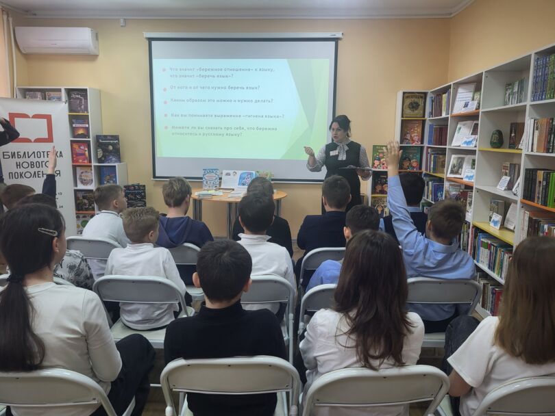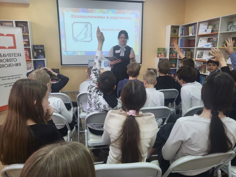 Русский язык — один из наиболее богатых и выразительных языков. Его гибкость позволяет передавать тонкие оттенки чувств и мыслей. Например, разнообразие синонимов помогает точнее выразить мысль, а пословицы и поговорки передают мудрость поколений. В детской модельной библиотеке-филиале №13 «Книжный мир» в рамках культурно просветительского проекта «Беречь речь» для учащихся 5-Г класса ГБОУ «СОШ № 38 имени Н. В. Челнокова» состоялся час словесности «Родной язык — как ты прекрасен».