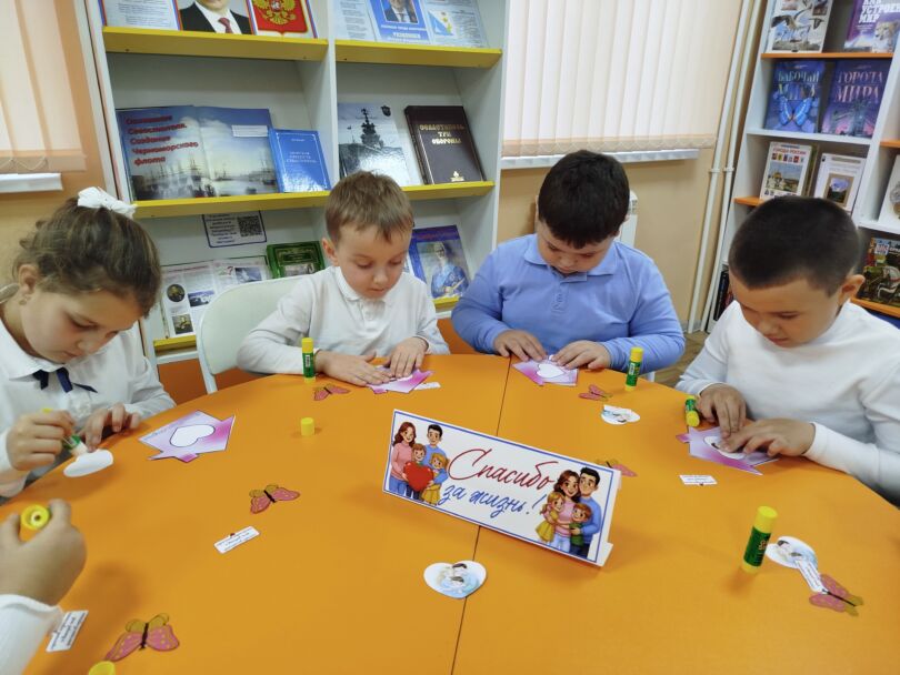 22 декабря в нашей стране отмечается Всероссийский праздник благодарности родителям «Спасибо за жизнь!». День благодарности родителям — напоминает нам о семейных ценностях, традициях, об уважение к родителям. В рамках семейной акции «Спасибо за жизнь», к Всероссийскому празднику благодарности родителям в модельной детской библиотеке-филиале № 13 «Книжный мир» для с учащихся 1 – Б класса ГБОУ «Средняя общеобразовательная школа № 22 имени Н. А. Острякова» состоялась литературно- игровая программа «Для самых дорогих людей».