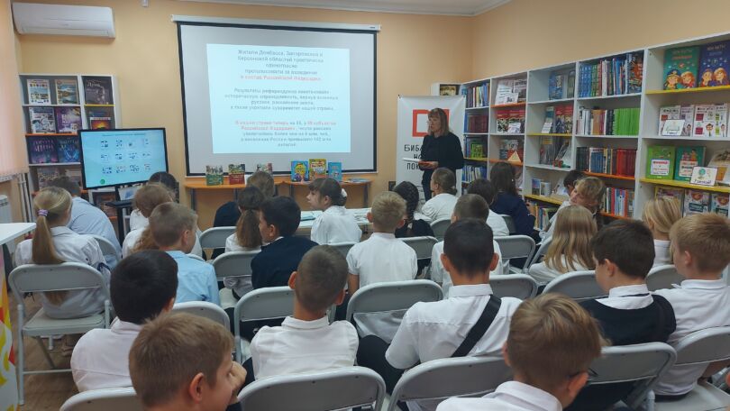 Ребята узнали, что в 2022 году к России присоединились новые территории — ЛНР, ДНР, Запорожская и Херсонская области. Это большой шаг, который меняет границы и объединяет людей с великой страной. Для многих жителей этих регионов это возможность жить в безопасности, развиваться и строить будущее вместе с Россией. Юные читатели ответили на вопросы: Что такое референдум? Что означает «присоединение» к стране? Какую роль играет мнение людей, когда решается вопрос о том, к какой стране они должны принадлежать? Затем ребята с удовольствием ответили на вопросы викторины по истории России, проявив отличные знания и интерес к прошлому нашей страны.