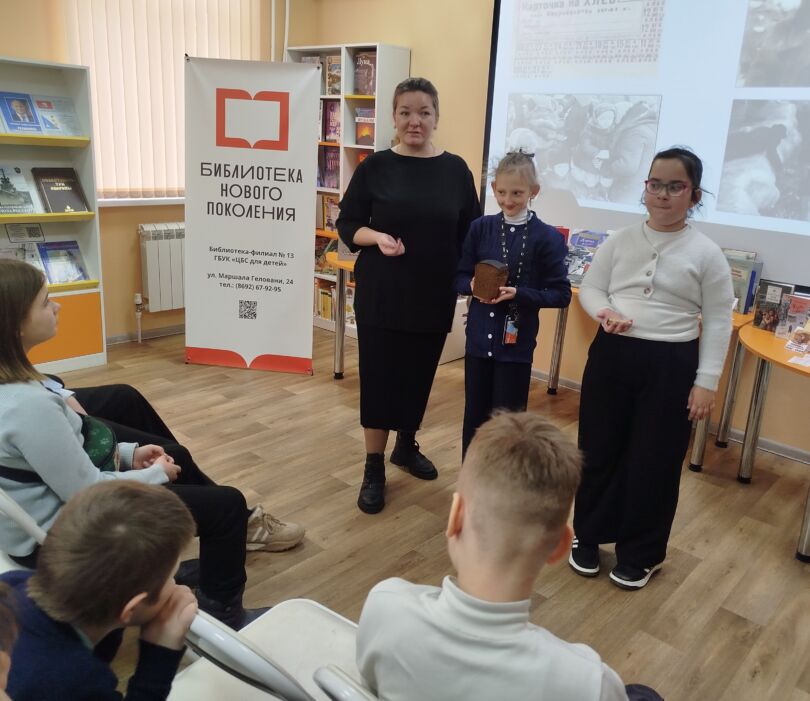 В модельной детской библиотеке-филиале № 13 «Книжный мир» состоялась особая встреча, ставшая завершением недели памяти, посвященная героической и трагической истории — блокаде Ленинграда, на которую пришли ребята вместе с родителями из коррекционных классов 1- Г, 3-Г, 4 — Г ГБОУ «СОШ № 4 имени А. Н. Кесаева». Юные читатели с удивлением и гордостью узнавали какой была жизнь их сверстников в осажденном городе: как дети ходили за водой на Неву, как дежурили на крышах туша «зажигалки».