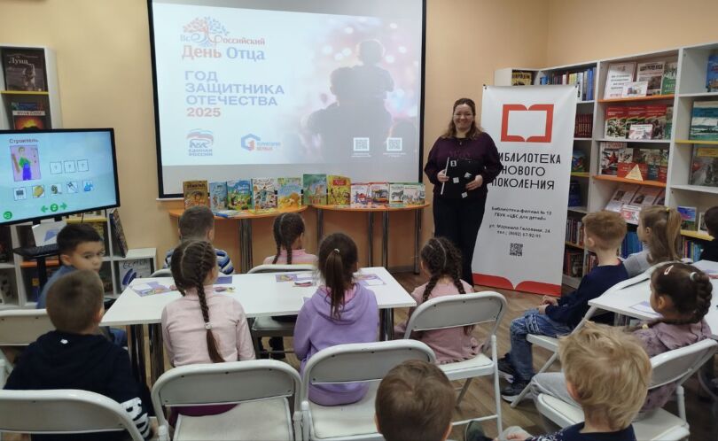 День отца – праздник в России сравнительно новый, дата его празднования – третье воскресенье октября. К этому дню в модельной детской библиотеке-филиале №13 «Книжный мир» состоялась познавательная программа «Быть отцом совсем непросто» для воспитанников детского сада №118 из групп №15 и №23. В начале библиотекарь кратко рассказала о праздновании Дня отца. Дети узнали, чем он важен для каждой семьи.