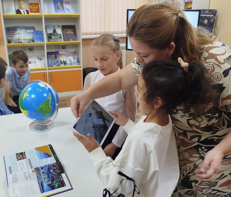 Юные читатели совершили удивительное путешествие в глубины моря с помощью 4 D книг c дополненной реальностью, которые с помощью специального мобильного приложения «оживали» морских обитателей превращая их в объемные модели, которые можно было рассмотреть со всех сторон, достаточно было навести камеру планшета на страницу, чтобы на ней проплыла акула, черепаха или зацвели кораллы. Читали интересные факты.