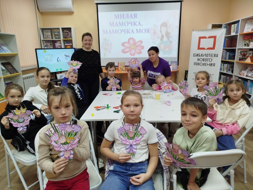 День матери в России отмечается в последнее воскресенье ноября. Это день, когда мы говорим спасибо нашим мамам за их любовь, доброту и заботу. К этому самому теплому и доброму празднику в модельной детской библиотеке-филиале №13 «Книжный мир» для активных читателей и учащихся 1- Г, 4 — Г класса ГБОУ СОШ №4 имени А.Н. Кесаева,состоялась познавательно-игровая программа «Мамочка милая, мамочка моя».