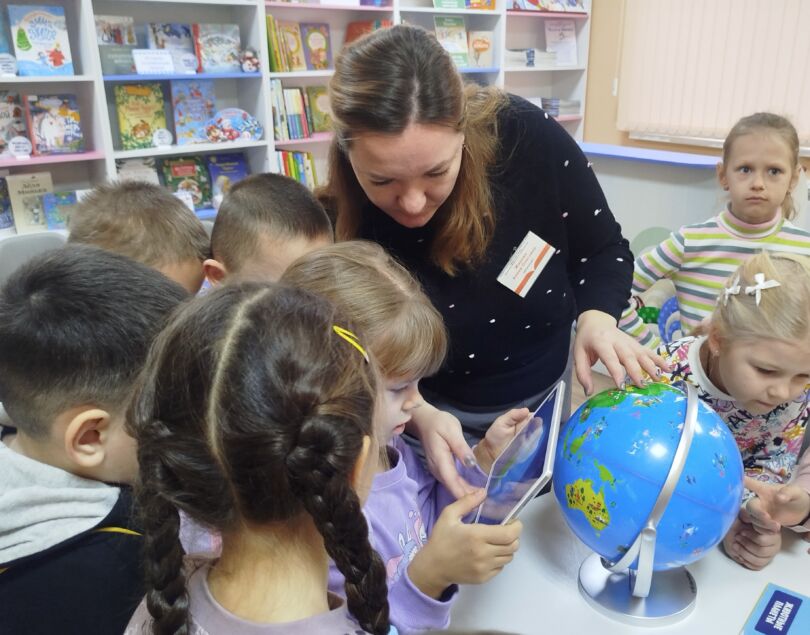 С большим интересом показывали без слов с помощью жестов профессии и дружно отгадывали их, вспоминали, кем были по профессии герои любимых книг. Особый восторг у детей вызвал интерактивный глобус, с его помощью узнали чем занимаются люди в разных уголках планеты.