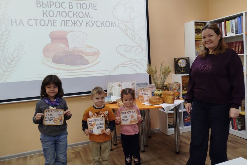 16 октября отмечается Всемирный день хлеба. Хлеб — символ труда, жизни, благополучия. В детской модельной библиотеке-филиале № 13 «Книжный мир» для самых юных читателей воспитанников ГБДОУ «Детский сад № 118» состоялся познавательный час «Золотые есть слова — Хлеб всему голова». Ребята с большим интересом узнали как выращивают пшеницу и рожь, как в старину пекли хлеб в печи, о долгом, сложном пути, который проходит хлеб, прежде чем оказаться на нашем столе.