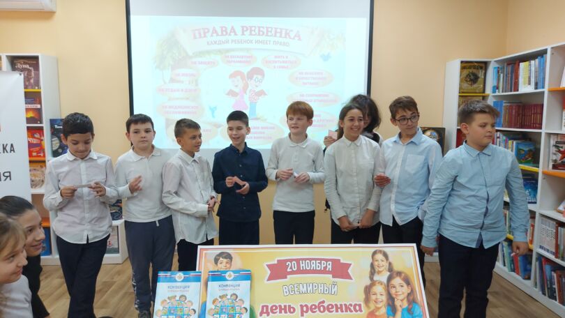 Всемирный день ребёнка отмечается 20 ноября — в этот день в 1989 году ООН приняла Конвенцию о правах ребёнка. В неделю правовых знаний в детской модельной библиотеке-филиале №13 «Книжный мир» состоялся познавательный час «О правах – и в шутку, и всерьез» с учащимися 5-б класса «СОШ № 38 имени Н.В. Челнокова». Читатели узнали о Конвенции, документе, защищающем права детей до 18 лет. Каждый ребенок обладает этими правами с рождения — это право на жизнь, имя, гражданство, защиту, лечение, образование, досуг, отдых.