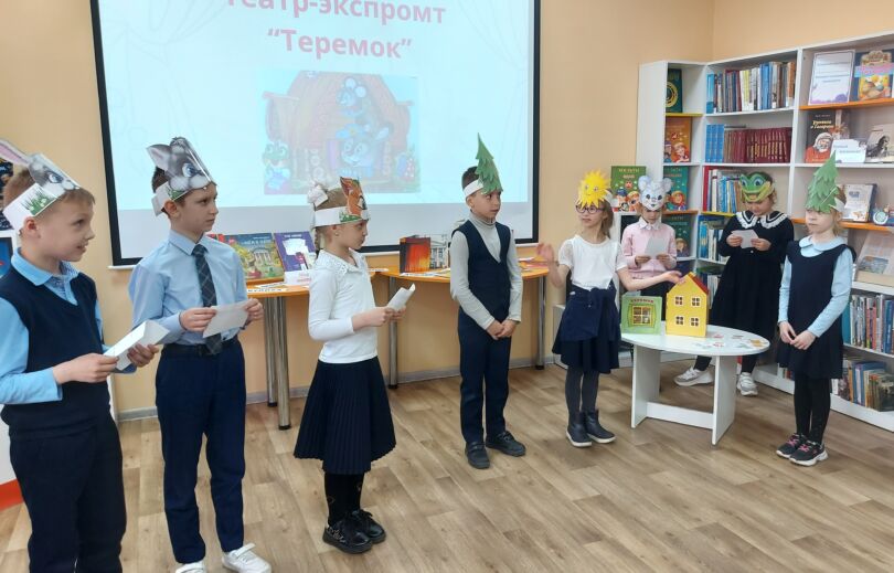 А завершилось мероприятие творческим экспериментом. Ребята приняли участие в спектакле-экспромте по мотивам русской народной сказки «Теремок». Игра помогла каждому участнику проявить артистизм, умение работать в команде, почувствовать атмосферу настоящего театра. Ребята с удовольствием исполняли свои роли, а зрители поддерживали их аплодисментами.