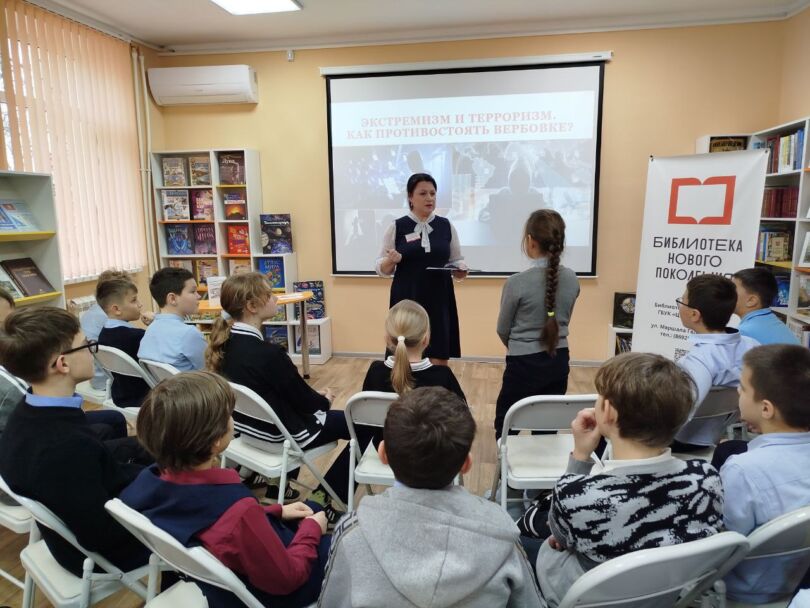 Одним из ключевых направлений борьбы с террористическими и экстремистскими проявлениями в общественной среде выступает их профилактика. Особенно важно проведение такой профилактической работы среди детей и подростков. Как защитить детей от мошенников и какие правила безопасности в интернете нужно знать и помнить — стала темой профилактического часа «Будь бдителен!» в детской модельной библиотеке-филиале №13 «Книжный мир» для ребят 5-Г класса «СОШ №22 им. Н. А. Острякова.»