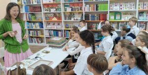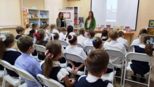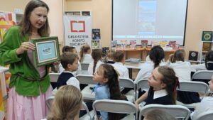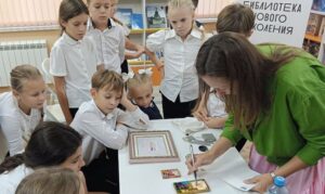 В рамках культурно-творческого проекта «Встречи с искусством» в модельной детской библиотеке № 13 «Книжный мир» состоялась творческая встреча с Марией Кривцовой — талантливой художницей, членом Союза акварелистов России. Учащиеся 4-А класса ГБОУ «Гимназия № 7 В.И. Великого окунулись в настоящую акварельную сказку.Мария провела увлекательную встречу, где рассказала о своём творчестве, познакомила ребят с удивительным миром акварели.