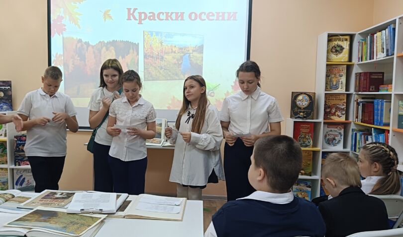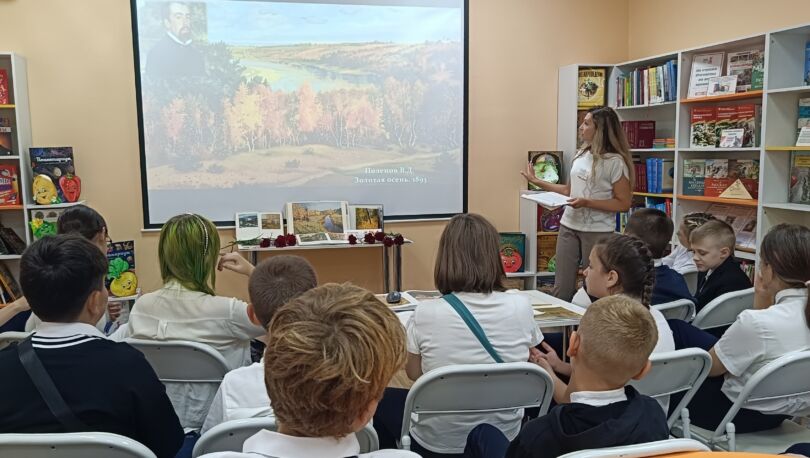 В центре литературы по искусству модельной детской библиотеки-филиала № 13 «Книжный мир» состоялся час живописи, посвящённый красоте русской осени. Библиотекарь предложила учащимся 5-В класс «ГБОУ СОШ № 4 имени А. Н. Кесаева» погрузиться в мир творчества русских художников и поэтов. Ребята познакомились с живописными репродукциями картин известных мастеров: Исаака Левитана, Архипа Куинджи, Василия Поленова и Ильи Остроухова. Их работы передают красоту и многоликость осенней природы: Как торжественны и величавы золотые леса, тихи и спокойны речные пейзажи.