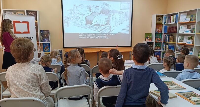 Мероприятие завершилось настоящим ретро‑сюрпризом. Юные участники с увлечением погрузились в просмотр и чтение диафильма по сказке «Морозко, которая легла в основу прославленного кинофильма А. Роу.