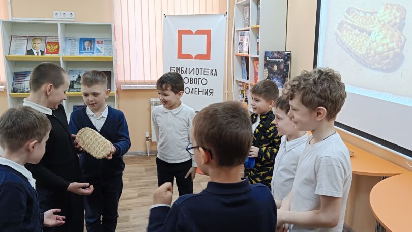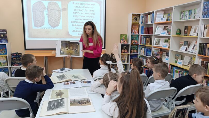 В рамках культурно-творческого проекта «Народные символы России в быту и искусстве» в центре литературы по искусству модельной детской библиотеки-филиала № 13 «Книжный мир» прошёл час искусства «Сказочный путь от лаптей до валенок». Учащиеся 1-В класса ГБОУ «СОШ № 38 имени Н. В. Челнокова» отправились в маленькое путешествие в прошлое и узнали, какую обувь носили наши предки на Руси.
