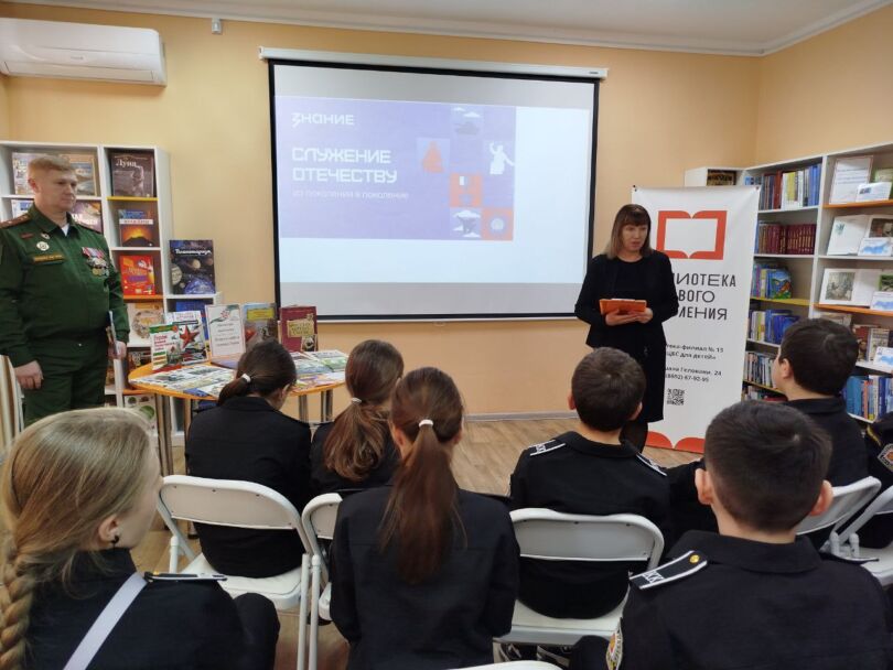 23 февраля вся Россия отмечает День защитника Отечества. К этому событию в детской модельной библиотеке-филиале № 13 «Книжный мир» состоялся час истории «Святое дело — Родине служить» с учащиеся 5-б класса ГБОУ «СОШ № 4 имени А. Н. Кесаева». Мероприятие было посвящено великим героям России, чьи имена навсегда вписаны в историю нашей страны. Ребята узнали историю Дня защитника Отечества, вспомнили о героях защищавших наше Отечество на протяжении многих веков. Среди них былинные богатыри, Петр I, Кузьма Минин и Дмитрий Пожарский, Александр Суворов, Михаил Кутузов, Фёдор Ушаков и другие.
