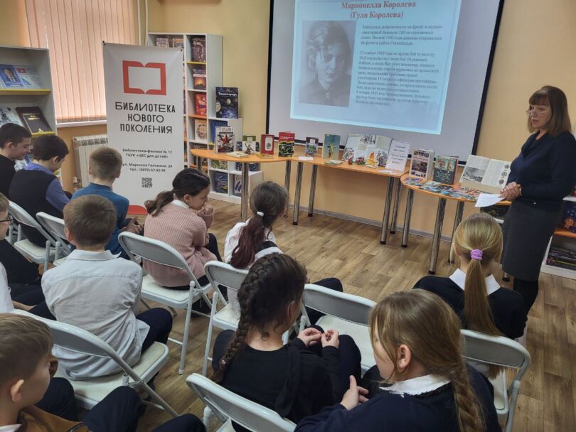 Юные читатели узнали о легендарном Доме Павлова, который на протяжении 58 дней удерживали советские бойцы, превратив его в неприступную крепость, знаменитом снайпере Василии Зайцеве, чья меткость стали символом сопротивления врагу, судьбе Люси Радыло — юной разведчице и защитнице Сталинграда, переходившей семь раз линию фронта не сделав ни одной ошибки, познакомились с книгой Е. Ильиной «Четвертая высота» о юной актрисе Марионелле Королёвой. Отважная и смелая девочка проявляет смелость в разных жизненных ситуациях, начиная от съёмок в кино и заканчивая героизмом на фронте.