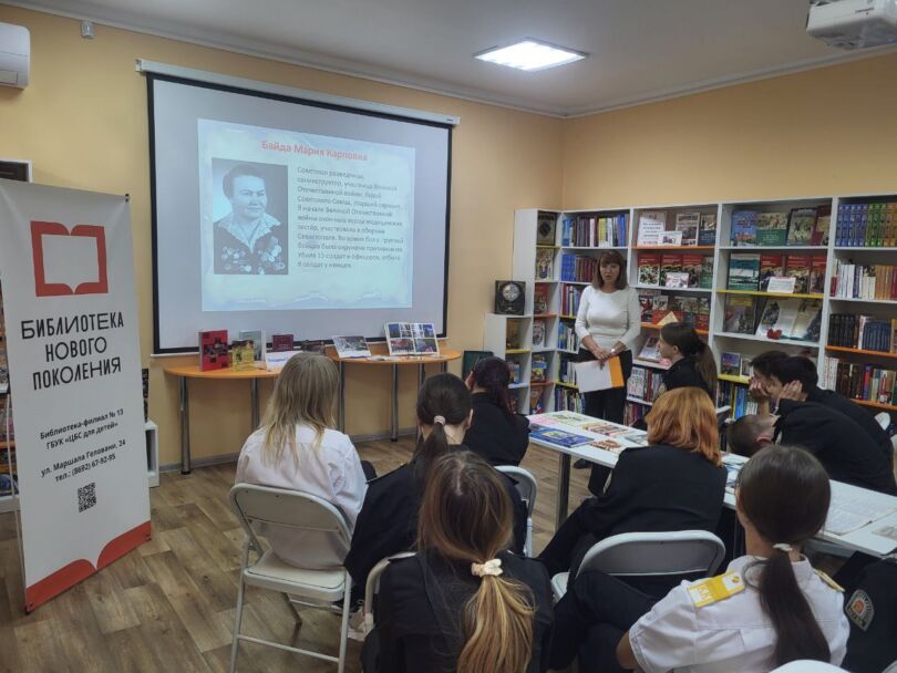 В детской модельной библиотеке-филиале № 13 «Книжный мир» прошёл час мужества «За родной Севастополь» с учащимися 8- Бкласса «СОШ № 4 имени А. Н. Кесаева», приуроченный к началу второй героической обороны города в годы Великой Отечественной войны. Библиотекари рассказали ребятам о подвиге защитников Севастополя, мужественно сражавшихся за свободу и независимость Родины, о событиях, которые развернулись в июне 1942 года, о героизме солдат и матросов, стойкости мирных жителей и важности обороны города.