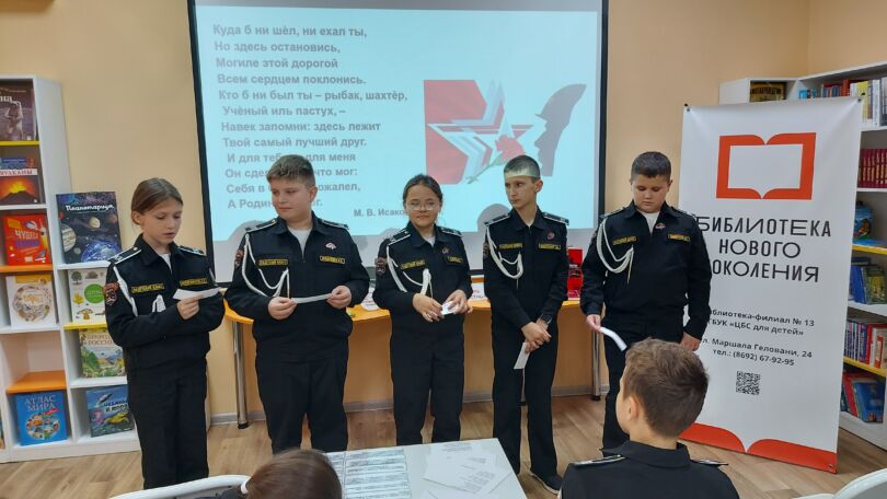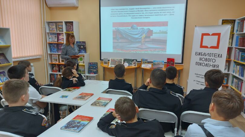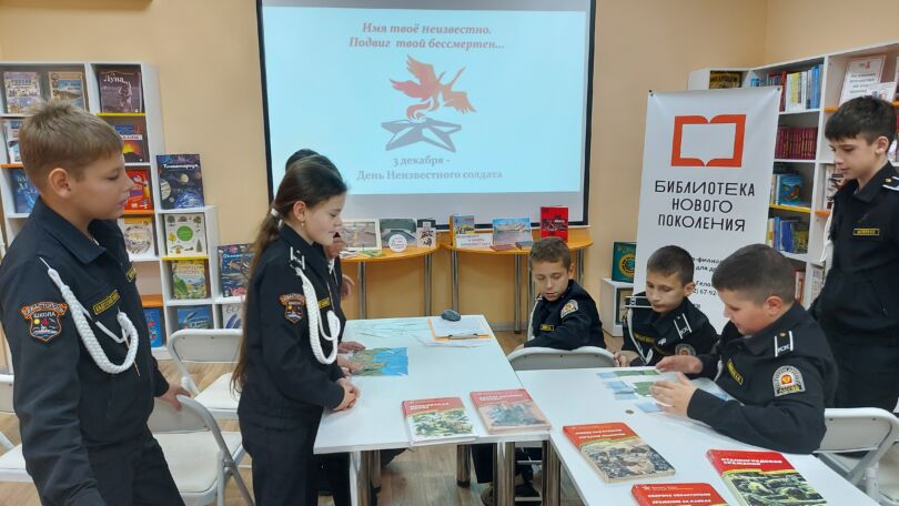 К этой дате в модельной детской библиотеке-филиале № 13 «Книжный мир» состоялся час памяти «Подвиг твой бессмертен, солдат» с читателями 5б класса ГБОУ СОШ № 4 имени А. Н. Кесаева. Ребята узнали об истории создания мемориального комплекса «Могила неизвестного солдата», который находится в Москве на Красной площади у Кремлевской стены, авторе памятных слов — «Имя твое неизвестно, подвиг твой бессмертен», начертанных на гранитной плите у Вечного огня. Юные читатели познакомились с памятниками и монументами Неизвестному солдату, которые находятся во многих городах и населенных пунктах нашей страны.