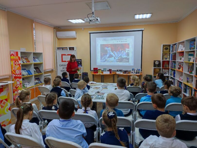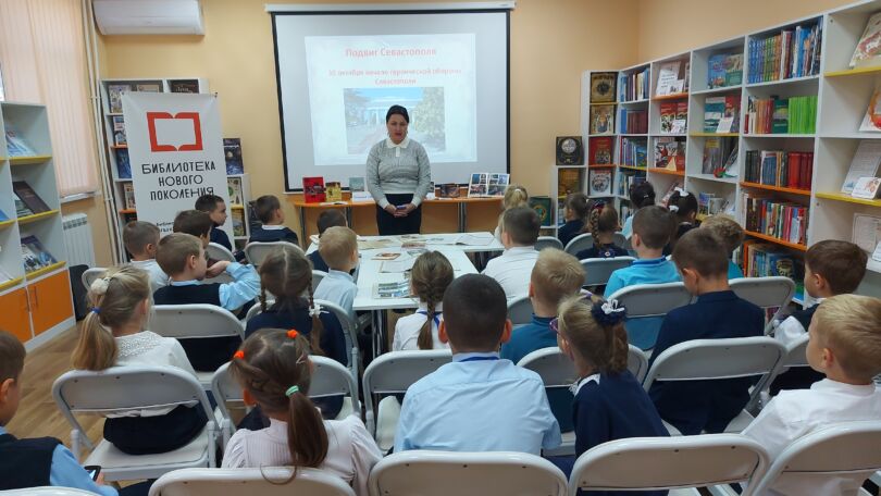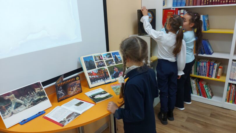 Далее в зале «Территория роста» ребята поучаствовали в беседе «Севастополь — о подвигах, о доблести». Библиотекари рассказали юным читателям о памятниках города-героя, о славных защитниках, чьи имена носят улицы нашего города. Первоклассники узнали почему улицы на которых они живут названы в честь Хрусталева, Голубца, Острякова, Геловани, других героев и почему эти имена навсегда вписаны в историю Севастополя.